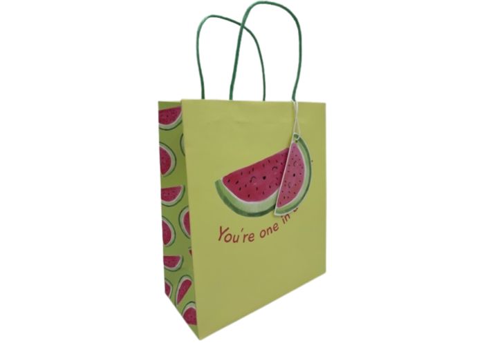 Cute Fruit Medium Gift Bag Pack of 6 Unpackaged, 215mm Width x 253mm Height x 102mm Depth/Gusset. 200GSM White Kraft FSC (Partisan)