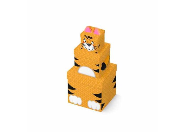 Set of 3 Plush Boxed Tiger Sizes Small to Large (9.5x7.5cm > 15.5x12cm)